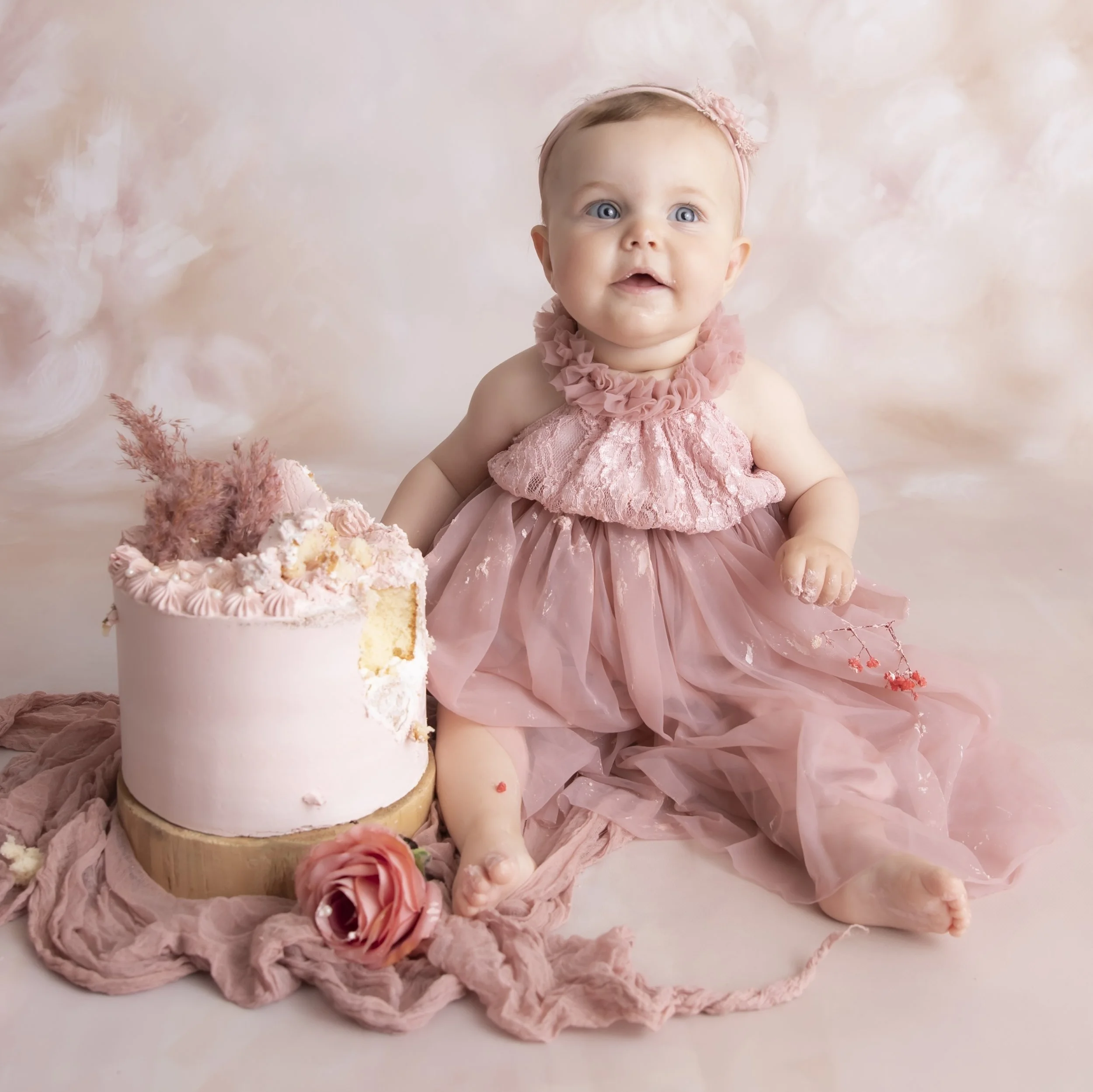 De Cake Smash shoot zelf is een superleuke ervaring, of zeg maar gerust een klein feestje om nooit te vergeten! Daarbij komt dat de arrangementen van Studio Seven “full service” zijn. Dit betekent dat de fotoshoot zorgvuldig wordt gestyled met een mooie outfit, luxe props en een prachtige, cupcake of taart. Je hoeft alleen maar met je kindje naar de studio te komen voor de fotoshoot!